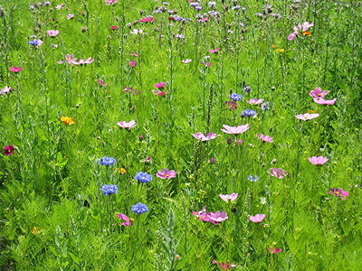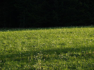 Auf der Wiese gibt es viele bunte Blumen. Man kann dort gut spielen. Unter der Wiese ist Erde. Ohne Regen werden die Wiesen nicht grün. Manche Gräser sind sehr spitz.