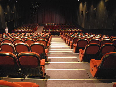Im Kino werden immer wieder neue Filme gespielt. Das Bild wird mit einem Projektor an eine weiße Wand geworfen. Wenn der Vorhang aufgeht, dann gibt es zuerst Werbung. Erst danach beginnt der Film.