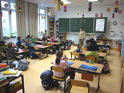 In einer Klasse gibt es Tische und eine Tafel. Außerdem gibt es immer Kinder und LehrerInnen. In einer Klasse ist es manchmal laut. In unserer Klasse gibt es eine Bücherei. Manche Kinder können noch nicht gut Deutsch.