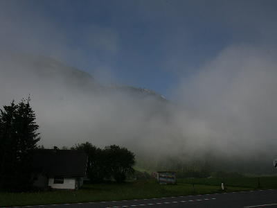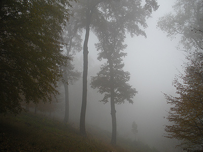 Im Herbst gibt es oft Nebel. Im Nebel verschwindet die ganze Landschaft. Man kann gar nichts mehr sehen. Das kann gefährlich werden. Wenn die Sonne kommt, löst sich der Nebel oft auf.