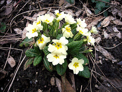 Primeln blühen schon zeitig im Frühjahr in den Gärten und auf den Wiesen. Sie sind mit der Schlüsselblume verwandt.