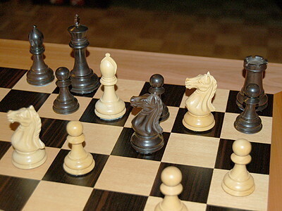 Auf dem Schachbrett gibt es schwarze und weiße Felder und Figuren. Die Figuren heißen König, Pferd, Läufer, Turm, Dame und Bauer. Schach können nur zwei Spieler spielen. Beim Schach muss man viel denken. Man kann gewinnen oder verlieren.