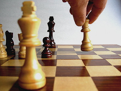 Auf dem Schachbrett gibt es schwarze und weiße Felder und Figuren. Die Figuren heißen König, Pferd, Läufer, Turm, Dame und Bauer. Schach können nur zwei Spieler spielen. Beim Schach muss man viel denken. Man kann gewinnen oder verlieren.
